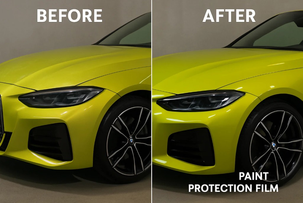 Drive worry-free. Paint Protection Film (PPF) is a crystal-clear, self-healing film that provides the ultimate defense against rock chips, scratches, bird droppings, and insect acids. Applied by our certified installers, PPF acts as a sacrificial shield, preserving your factory paint for years to come.